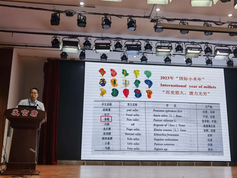 9月5-7日,2023年国际小米年学术年会、第五届中国小米产业发展大会暨中国(兴县)首届产业博览会在山西省吕梁市兴县召开,院党委委员副院长杨天育研究员应邀参会并做了“国内糜子产业技术研究进展”的学术报告。大会举办了学术论坛、县长论道,观摩杂粮生产基地和龙头企业,为小米产业发展凝聚了资源与智慧,为助推小米产业高质量发展和促进乡村振兴提供了新思路。会议由山西农业大学、中国农业科学院作物科学研究所、山西省名优土特新产品协会主办,来自全国各地从事谷子等杂粮管理、科研、生产、加工与营销的政府部门领导、行业协会负责人,大专院校和科研院所科技人员,龙头企业代表等400余人参加会议。