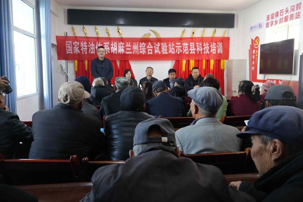 3月6日,国家特色油料产业技术体系胡麻兰州综合试验站在榆中县连搭乡石头沟村组织开展胡麻春播科技培训。