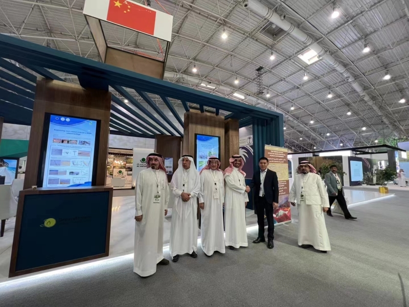 论坛暨展会聚焦生态保护、沙漠化防治、植被恢复和水资源管理领域,邀请全球专家学者参会参展,分享经验成果。中国驻沙特大使陈伟庆和沙特环境与防止荒漠化协会主席穆塔伊卜·本·法赫德·费萨尔王子及沙特环境水利农业部官员先后到中国甘肃馆参观。我院推出的蔬菜研究所戈壁设施瓜菜绿色高效栽培技术主题展吸引了沙特多方关注。