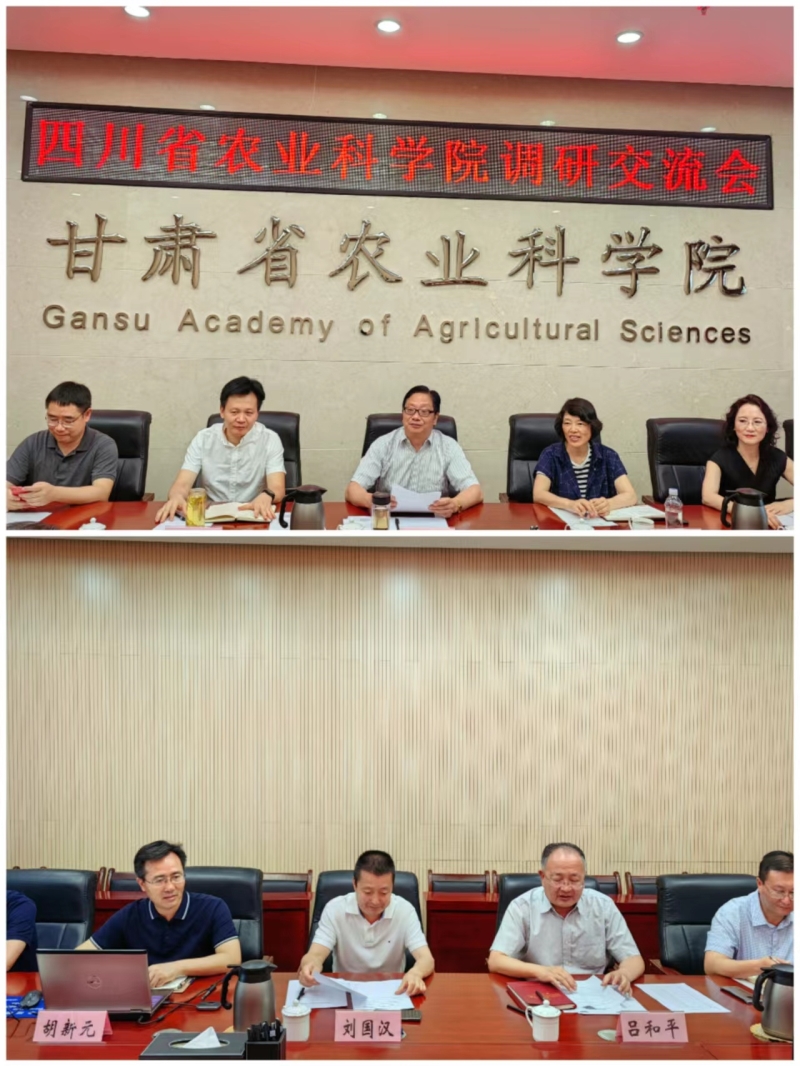 7月4日,四川省农业科学院党委副书记钟毅带领党委办公室、干部人事处、离退休人员工作处以及农业信息与农业经济研究所负责人一行7人来我院调研交流并座谈。院党委书记刘国汉出席座谈会,院党委委员、副院长吕和平主持。
