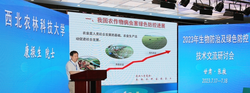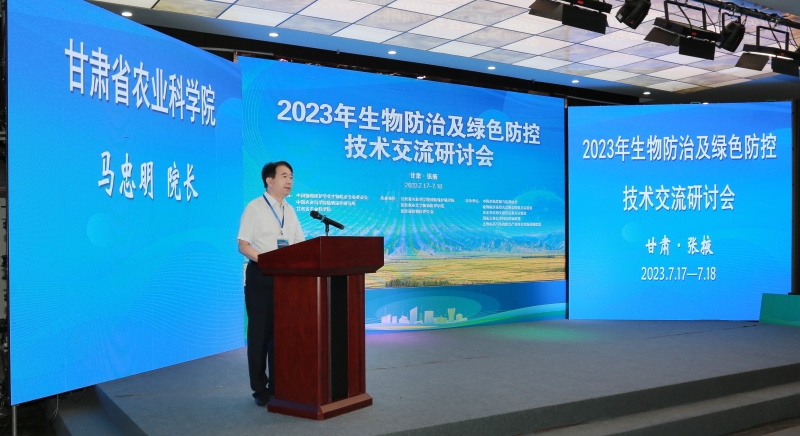 7月17日-18日,“2023年生物防治及绿色防控技术交流研讨会”在甘肃省张掖市召开。中国植物保护学会理事长/中国工程院院士陈剑平、甘肃省农业科学院院长马忠明、中国农业科学院植物保护研究所副所长陈昶、全国农业技术推广服务中心防治处处长刘万才出席开幕式并致辞,甘肃省农业科学院党委书记刘国汉、农业农村部农药检定所药效审评处处长林荣华等领导专家出席开幕式。会议由中国植保学会生物防治专委会主任张礼生、甘肃省农科院植保所党总支书记兼所长郭致杰联合主持。