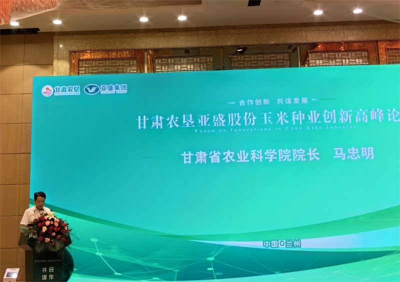 8月7日,院长马忠明受邀出席甘肃农垦亚盛股份玉米种业创新高峰论坛并致辞。省农业农村厅副厅长常宏,甘肃农业大学校长柴强,省农业农村厅二级巡视员杨玉杰,甘肃农垦集团党委书记、董事长张懿笃,省科技厅农村科技处处长王芳等有关领导出席。甘肃省种子协会会长、作物研究所党总支书记张建平、副所长周玉乾及玉米研究室科技人员参加了此次论坛。