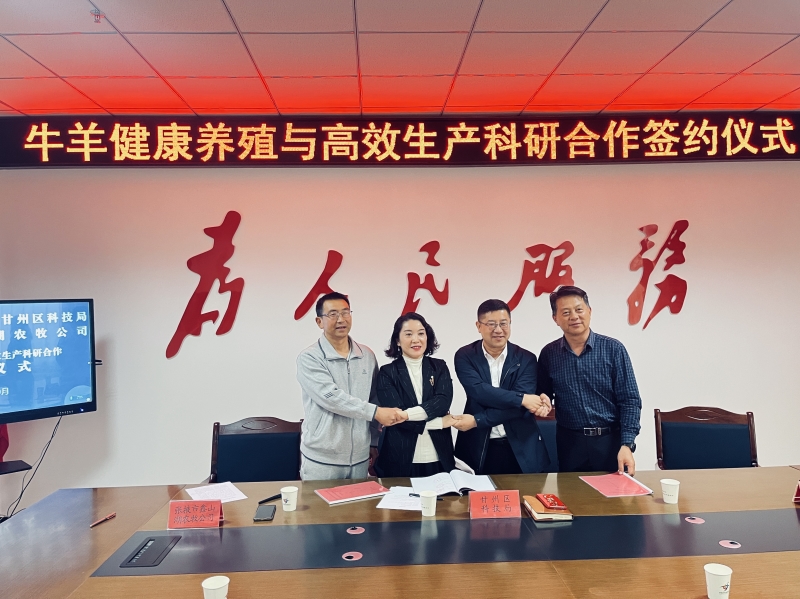 同时,在市、区科技局的见证下,我所与张掖市鑫山湖农牧发展有限公司就联合开展牛羊健康养殖与高效生产研究,以及常规饲料技术攻关与关键技术研究、非常规饲料研究与开发、中药材饲料化利用技术开发、秸秆饲料的利用等关键技术的研究与攻关签订科技合作三方协议。此次协议的签订,标志着我所产学研协同创新工作取得又一进展。
