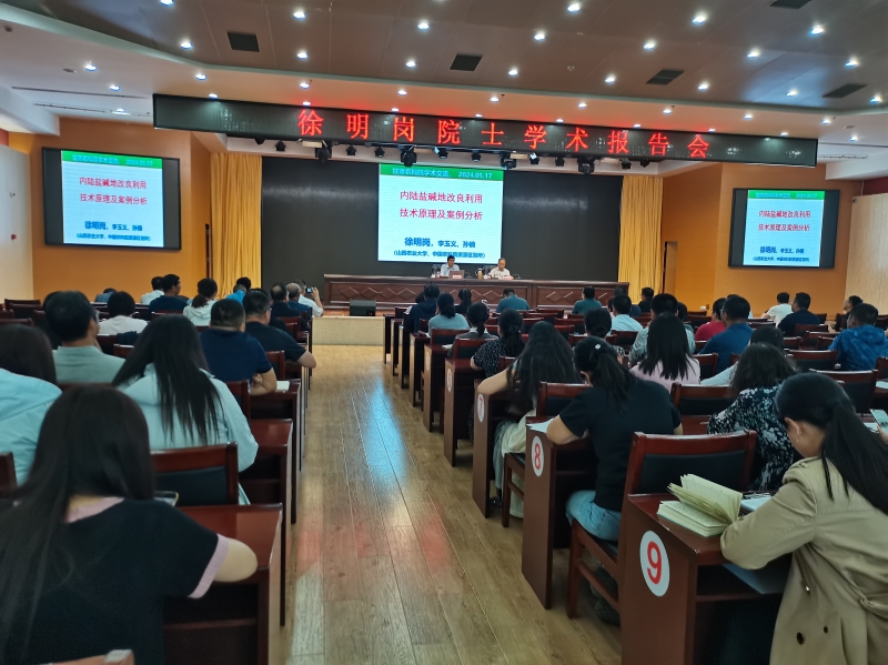 徐明岗院士以“内陆盐碱地改良利用技术原理及案例分析”为题作精彩的学术报告。报告从“盐碱土改良原理与技术、改土种植和适土种植是盐碱地综合利用、农业生物盐碱土改良原理与技术和盐碱土改良案例分析”四个方面进行详细讲解。报告指出土壤的水盐运动是改良盐碱土核心基础,从改土种植到适土种植是盐碱地综合利用的重要转变,要坚持分类综合治理、梯次提升质量的新路径,采用良种-良法-良地融合提升盐碱耕地产能,从而达到盐碱消减、结构优化、增碳稳碳、功能活化的目标;提出原位梯度长期定位试验是挖掘更多盐碱地适种植物和改良技术的重要途径。我院在场的科研人员深刻领略了徐院士渊博的知识,严谨的治学,独到的见解,学术报告在激烈的掌声中落下帷幕。