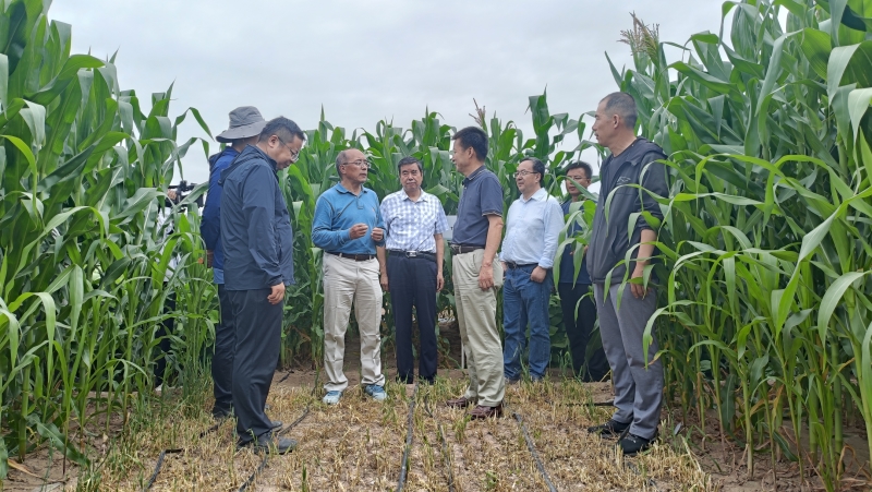 在民乐县副县长展兴华的陪同下,徐明岗院士、院党委书记刘国汉观摩了华瑞农场青贮玉米/大豆宽幅间作千亩示范方,详细了解了玉米、大豆机械化播种、水肥分带控制、土壤封闭处理等技术应用效果,课题负责人、土肥所所长汤莹汇报了该技术模式在产能提升、土壤增碳培肥方面取得的最新研究进展;在肃州区总寨镇单闸村、金塔县金塔镇西沟村观摩了玉米套作繁种豌豆复种绿肥、浅埋滴灌小麦复种秋菜(饲草)两个千亩示范方,并深入田间观察作物田间长势及水肥利用情况;在山丹县清泉镇郇庄村,观摩了小麦-大豆宽幅带状种植、麦后复种燕麦综合技术模式示范方,对该模式在提升水肥利用效率、进一步提高机械化作业水平等方面给予了指导。