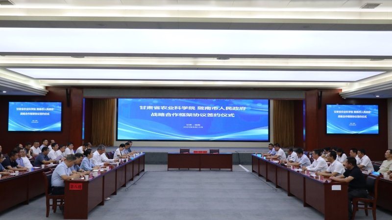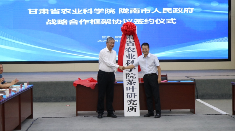 8月13日,省农业科学院与陇南市战略合作框架协议签约仪式在武都举行,并挂牌成立甘肃省农业科学院茶叶研究所,院党委书记刘国汉、陇南市委书记张柯兵出席仪式并致辞。院党委委员、副院长杨天育出席,市委副书记、市长刘永革主持。