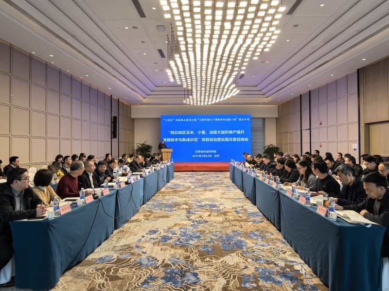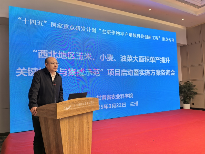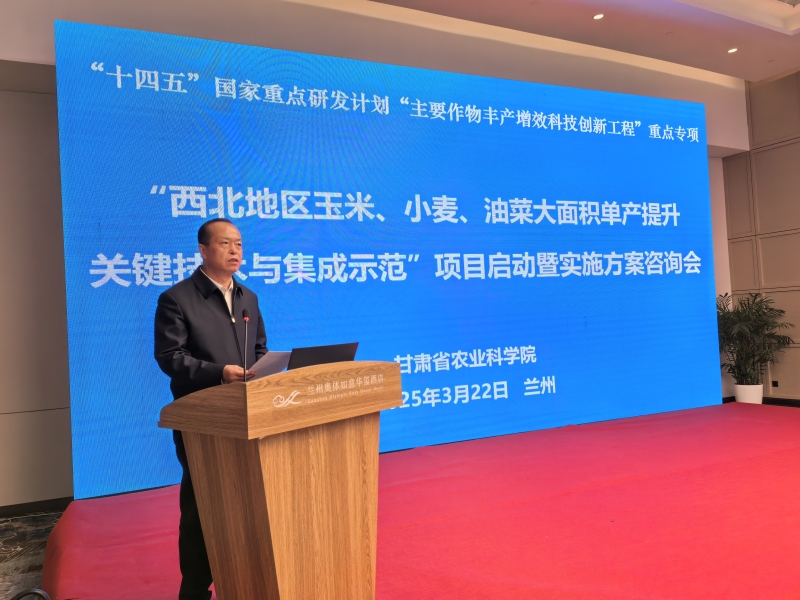 3月22日,“十四五”国家重点研发计划“主要作物丰产增效科技创新工程”重点专项“西北地区玉米、小麦、油菜大面积单产提升关键技术与集成示范”项目启动暨实施方案咨询会在兰州召开。该项目由甘肃省农业科学院牵头,省内外18家科研院校、农技推广部门联合实施。会议邀请中国工程院院士、山西农业大学徐明岗研究员,农业农村部科技发展中心总农艺师郑戈,甘肃农业大学校长柴强,全国农业技术推广服务中心节水处处长吴勇,西北农林科技大学教授薛吉全等专家对项目实施方案进行咨询论证。院长、党委副书记常宏,副院长樊廷录,院党委委员、副院长杨天育出席会议,甘肃省农业农村厅副厅长徐利群、甘肃省科技厅农村处处长王芳到会指导。