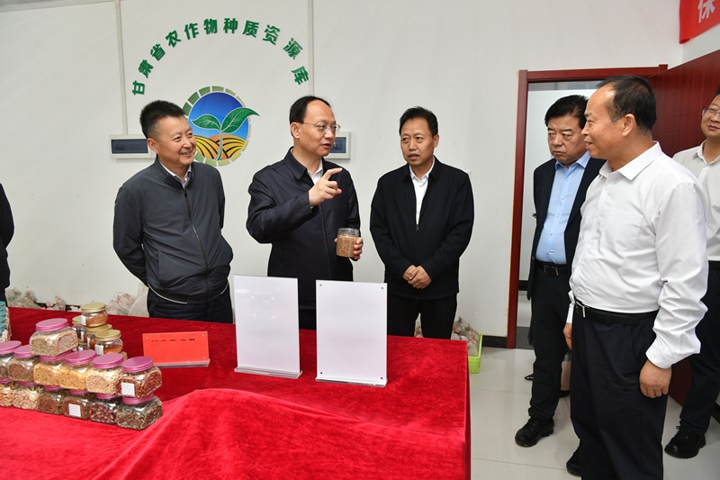 王钧先后前往马铃薯研究所种薯繁育中心、作物研究所农作物种质资源库和农业科技馆,详细了解了农作物品种培育、种质资源保护以及农业科技创新推广应用等情况,并出席调研座谈会,听取我院基本情况介绍和下一步工作打算。王钧对我院近年来的工作成绩给予了充分肯定,对我院广大农业科技工作者为全省农业发展做出的贡献表示感谢。他强调,要紧扣现代寒旱特色农业先行基地建设,立足省情农情,加快推进花牛苹果、玉米、马铃薯等良种繁育,持续推进旱作农业技术集成创新,培育具有甘肃特色的农业新质生产力。要聚焦产学研用深度融合,提高科技成果转化服务质效,持续助力乡村全面振兴,推动农业增效益、农村增活力、农民增收入。要深化体制机制改革,致力打造西部一流的农业科研院所。要扎实开展深入贯彻中央八项规定精神学习教育,加强党风廉政建设,切实把学习教育成果切实转化为推动科研创新高质量发展的实际成效。