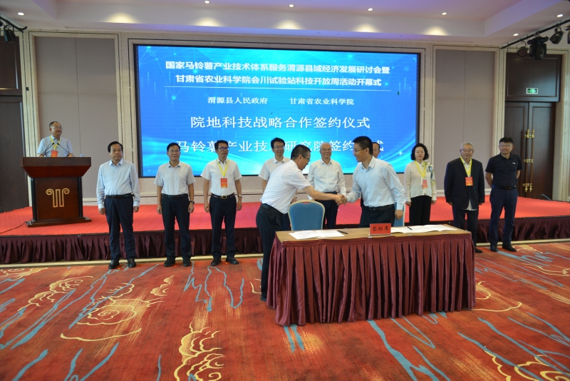 会议期间,省农科院与渭源县人民政府签订了科技合作协议和马铃薯产业技术研究院协议,为“渭源县马铃薯产业技术研究院”揭牌,观看了会川试验站建站60周年宣传片,国家马铃薯产业技术体系首席科学家徐建飞研究员及岗位科学家文国宏研究员分别作了大会主旨报告。