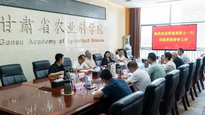 8月13日,中国工程院院士、南京林业大学曹福亮教授一行来我院调研并座谈,院长、党委副书记常宏会见了曹福亮院士一行,对他们的到来表示热烈欢迎,并就农业科研院校学科建设、“十五五”国家重点项目谋划、甘肃林果产业发展等与曹福亮院士进行了深入交流。会议由党委委员、副院长田青主持。