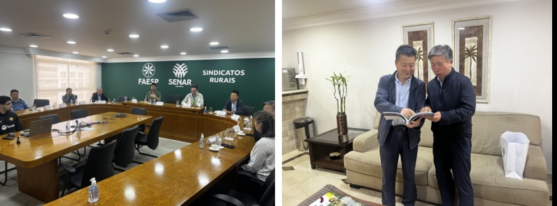 转赴巴西考察期间,代表团赴农业综合企业协会(AGBG),详细了解了巴西作物种植情况和大豆、棉花、畜牧业生产情况,以及现代农业先进技术、专业合作社运行模式,成果转化方式;与巴西农业综合企业协会(AGBG)总经理就现代农业技术交流、人才培养、信息共享交换了意见。