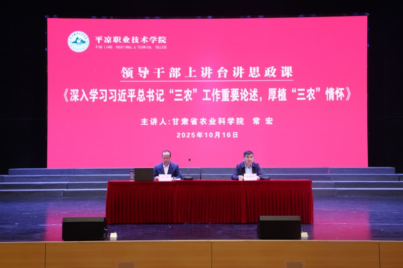 为深入贯彻落实中共甘肃省委教育工作领导小组关于领导干部上讲台讲思政课的统一安排,10月16日,院长、党委副书记常宏赴平凉职业技术学院,以“深入学习习近平总书记‘三农’工作重要论述,厚植‘三农’情怀”为题,为该院师生讲授了一堂主题鲜明、内容翔实的专题思政课。