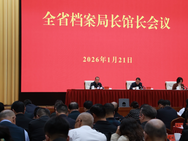 全省档案局长馆长会议于2026年1月21日在兰州召开。会议坚持以习近平新时代中国特色社会主义思想为指导,深入学习贯彻习近平总书记对档案工作的重要指示和视察甘肃重要讲话重要指示精神,贯彻全国档案局长馆长会议和省委十四届九次全会部署,总结2025年工作,部署2026年任务。省委书记、省人大常委会主任胡昌升作出批示。省委常委、省委秘书长雷东生出席会议并讲话。