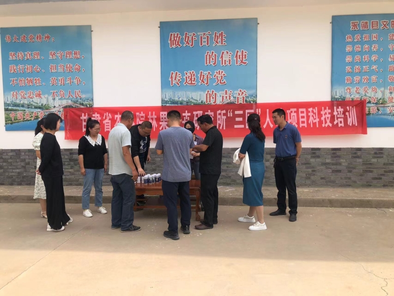 2023年6月9日,林果花卉研究所科技人员赴永靖县三塬镇下塬村及富景种植农民专业合作社开展“三区”人才项目科技培训。