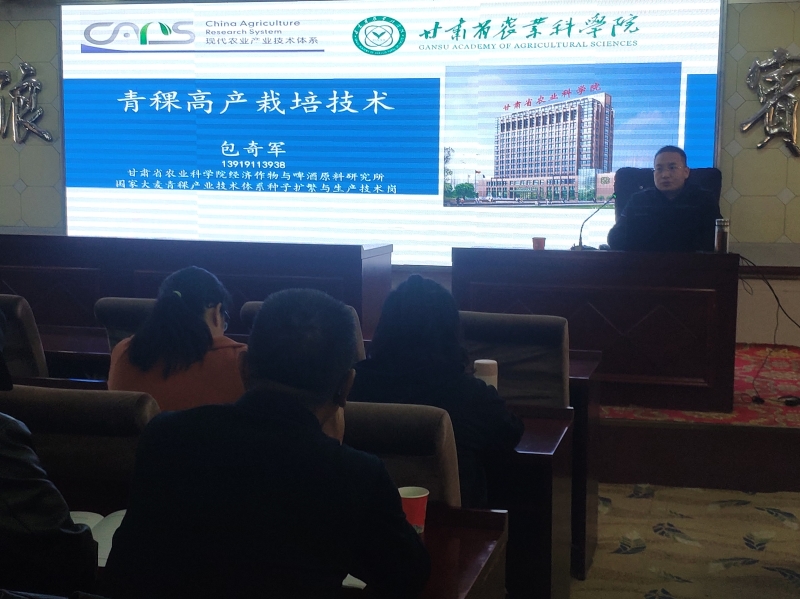 国家大麦青稞产业体系种子扩繁与生产技术岗位科学家、国家乡村振兴古浪县科技特派团大麦青稞产业组组长、我院经济作物与啤酒原料研究所包奇军副研究员受邀在培训班作了题为《青稞高产栽培技术》报告。