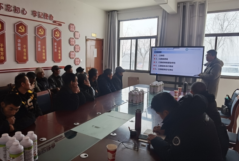 1月25日,我院生物技术研究所“特色作物高产栽培”三区服务团队成员石有太、崔文娟、张运晖等赴永靖县三条岘乡大地坪村开展三区科技培训服务。培训现场服务团队与当地养殖户深入交流,根据服务村肉羊养殖近期的问题,邀请中国农业科学院兰州兽医研究所周继章研究员、孙普副研究员细致讲解了《引起羊流产的主要疫病防控》、《口蹄疫及其防控》等知识,并实地走访了养殖专业户,调研当地养殖场情况,现场发放了我所研制的“肥力多”水溶肥6箱。