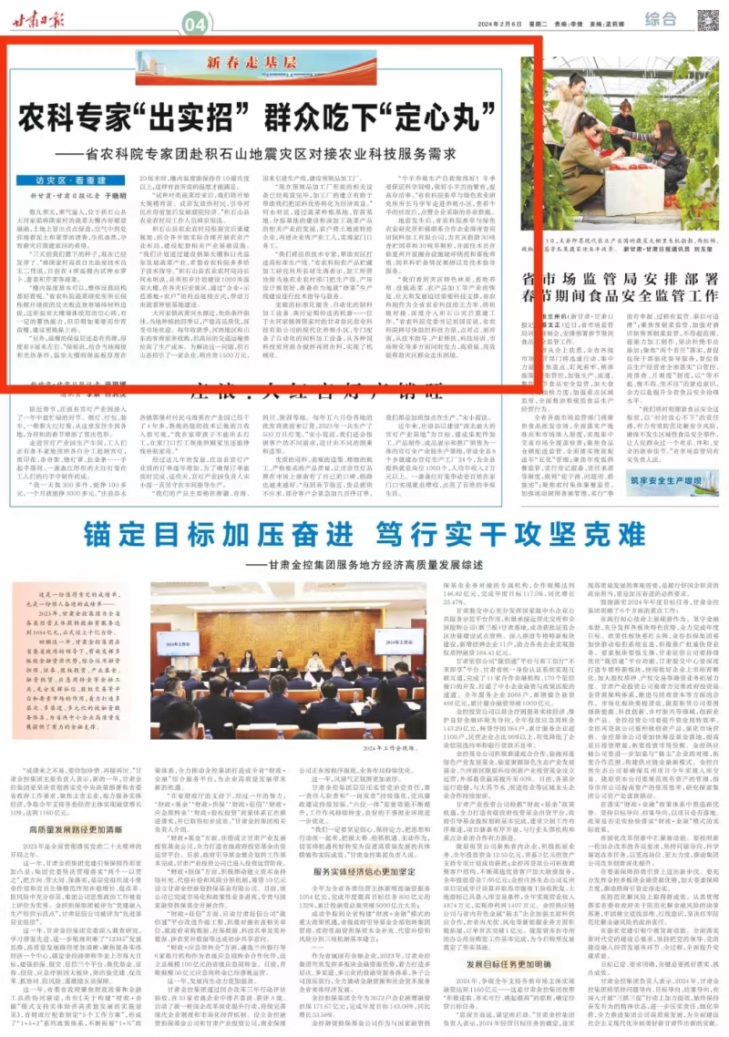 2024年2月6日,新甘肃“新春走基层 访灾区·看重建”专栏报道我院助力积石山灾后重建工作,报道全文如下: