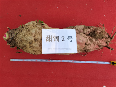 饲用甜菜具有单位面积生物产量高、饲用范围广、营养价值高、适口性好、喂养比和消化率高等优点,是一种较好的饲用作物,被誉为“奶牛的水果”。不仅含有常规营养物质,还富含叶酸、泛酸、甜菜碱等多种生物活性物质,具有提高畜禽免疫力,诱导进食,促进消化,消耗脂肪、增加瘦肉率等功效。甜饲2号是甘肃省农科院经济作物与啤酒原料研究所选育的国内第一个饲用甜菜杂交种,2009年通过认定。在水肥光热条件较好时,根叶产量可达16吨/亩以上,且在中重度盐碱地皆可种植,耐寒性较强,在高海拔地区丰产稳产性较好。