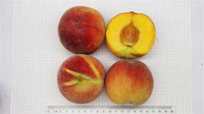 果实发育期100天,中熟品种。平均单果重214克,最大单果重264克;可溶性固形物含量13.8%,果肉黄色,硬溶质,粘核,风味酸甜适中;果实近圆形,果顶平,果形端正,果实着红色条纹。该品种在兰州安宁区7月下旬成熟。适宜在甘肃省兰州市、天水市、陇南市等桃产区种植。