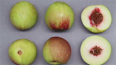 果实发育期145天,晚熟品种。平均单果重102克,最大单果重135克;可溶性固形物含量19.8%,果肉白色,硬溶质,半离核,风味浓甜;果实近圆形,果顶平,果形端正,果实70%着红色。该品种在兰州安宁区9月中旬成熟。适宜在甘肃省兰州市、天水市、陇南市、嘉峪关市等桃产区种植。