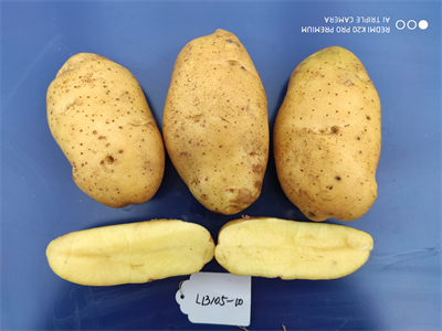 鲜食菜用型品种,原代号L13105-10中熟,生育期93天,花白色。薯块椭圆形,薯皮光滑,淡黄皮淡黄肉,芽眼较浅,商品率84.1%。薯块含干物质19.7%,淀粉13.84 % ,粗蛋白1.86 %,还原糖0.24%,维生素C 12.4 mg/100g。中抗晚疫病,对花叶病毒病和卷叶病毒病抗病。全省区域试验最高亩产4223.70公斤,平均亩产2944.1公斤,比统一对照LK99 增产37.88%。在甘肃省天水武山、张掖山丹、白银会宁、靖远、兰州榆中等地,广西省崇左、广东省惠东表现优良。
