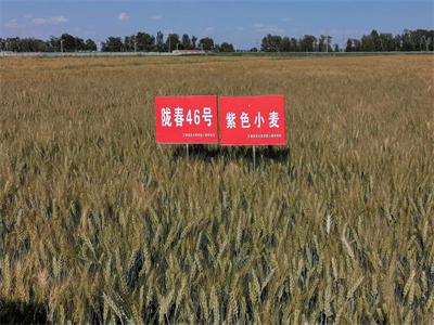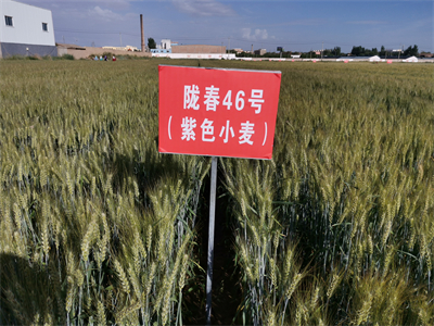 技术特点:春性,株高83厘米,生育期102天,比对照晚熟1天。幼苗直立,叶色深绿,纺锤形穗,长芒,白壳,紫粒,硬质,千粒重平均44.4克,容重平均795克/升。基本苗平均36.7万/亩。有效穗数平均30.5万/亩。穗粒数平均43.3粒。2021~2022参加甘肃省水地春小麦西片区试试验,2年12点(次)平均亩产472.79公斤,对照平均亩产476.54公斤,平均比宁春4号减产0.79%,平均增产点次率41.67%。属于彩色小麦,该品系田间表现穗层整齐,熟相好,丰产性较好。2023年参加甘肃省水地春小麦西片区试生产试验。经农业农村部谷物及制品质量监督检验测试中心(哈尔滨)测试,陇春46号富含花青素、各种维生素和微量元素,与普通小麦相比,花青素含量高433.33%、维生素E含量高25%、维生素B1含量高15.93%、维生素B2含量高195.56%、铁含量高20.57%、锌含量高39.02%、锰含量高122.44%、硒含量高571.64%、人体必须氨基酸含量均有提高。适种区域:适宜甘肃省河西水地品种类型区种植,也适宜西北春麦区生态条件类似地区种植。