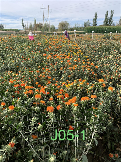J05-1是我院以当地品种“矮大头”为母本、新红7号为父本杂交而成,2018年-2020年逐年分行种植、套袋隔离,从中选择花色桔红、果球大、无刺的个体,得到了植株低矮、性状稳定、株型紧凑、适应性强、品质优良的品系。2021-2023年参加品比试验、小面积示范。