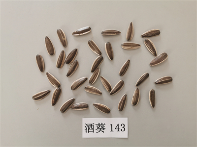 向日葵新品种酒葵143是酒泉市农科院以不育系XF118A为母本,以恢复系FK1421C为父本杂交选育而成的食用向日葵新品种,2021年通过中华人民共和国农业农村部登记,登记编号:GPD向日葵(2020)620333。