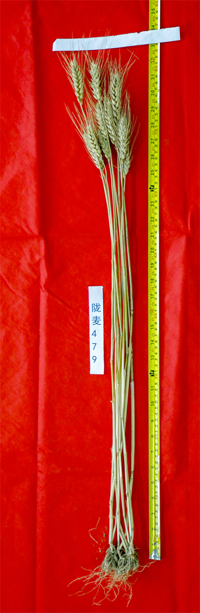 特征特性:冬性。全生育期272天,与对照品种陇育4号相同。幼苗半匍匐,叶色深绿,分蘖力强。株高75.6--80.0厘米,株型紧凑,抗倒性好。旗叶下披,整齐度好,穗层整齐,熟相好。穗型穗纺锤形,长芒、白壳、白粒,籽粒半角质,饱满度好。亩穗数平均34.5万穗,穗粒数34粒,千粒重42克。抗病性鉴定,抗条锈病,中抗叶锈病,具有慢条锈病特性,中抗白粉病;品质检测结果,籽粒容重800克/升,蛋白质含量16.2%,湿面筋含量37.4%,赖氨酸含量0.36。