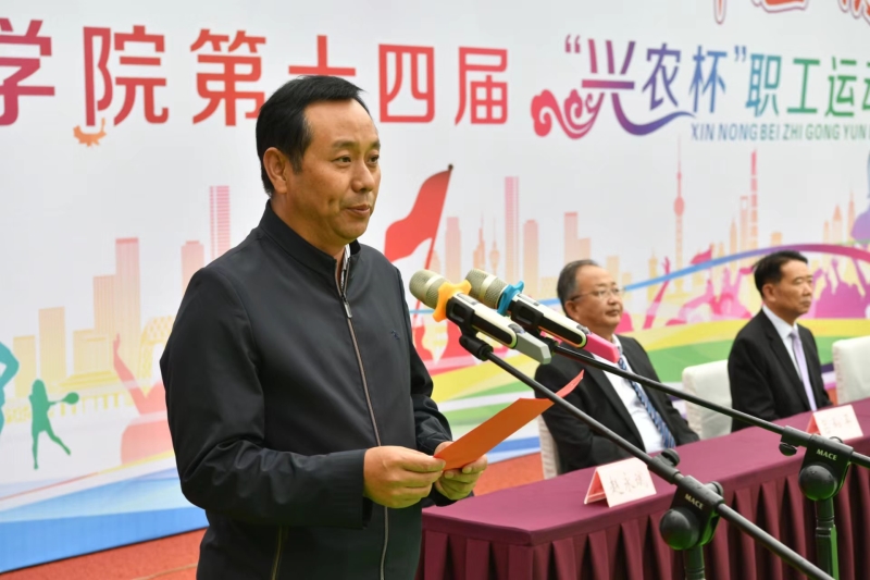 杨晓忠代表省委直属机关工委对我院运动会的开幕表示热烈祝贺,对长期以来在农业科研一线扎实工作、辛勤耕耘的广大科技工作者致以诚挚的问候。他表示,近年来,省农科院深入践行社会主义核心价值观,形成了具有“农科”特色的文化氛围。广泛开展了形式多样、内涵丰富的群众性文化活动,为全省农业科技创新提供了强有力的文化保障和精神支撑,为丰富和拓宽全省科研院所文化建设提供了有益借鉴,有力推动了全省农业科技系统精神文明建设。