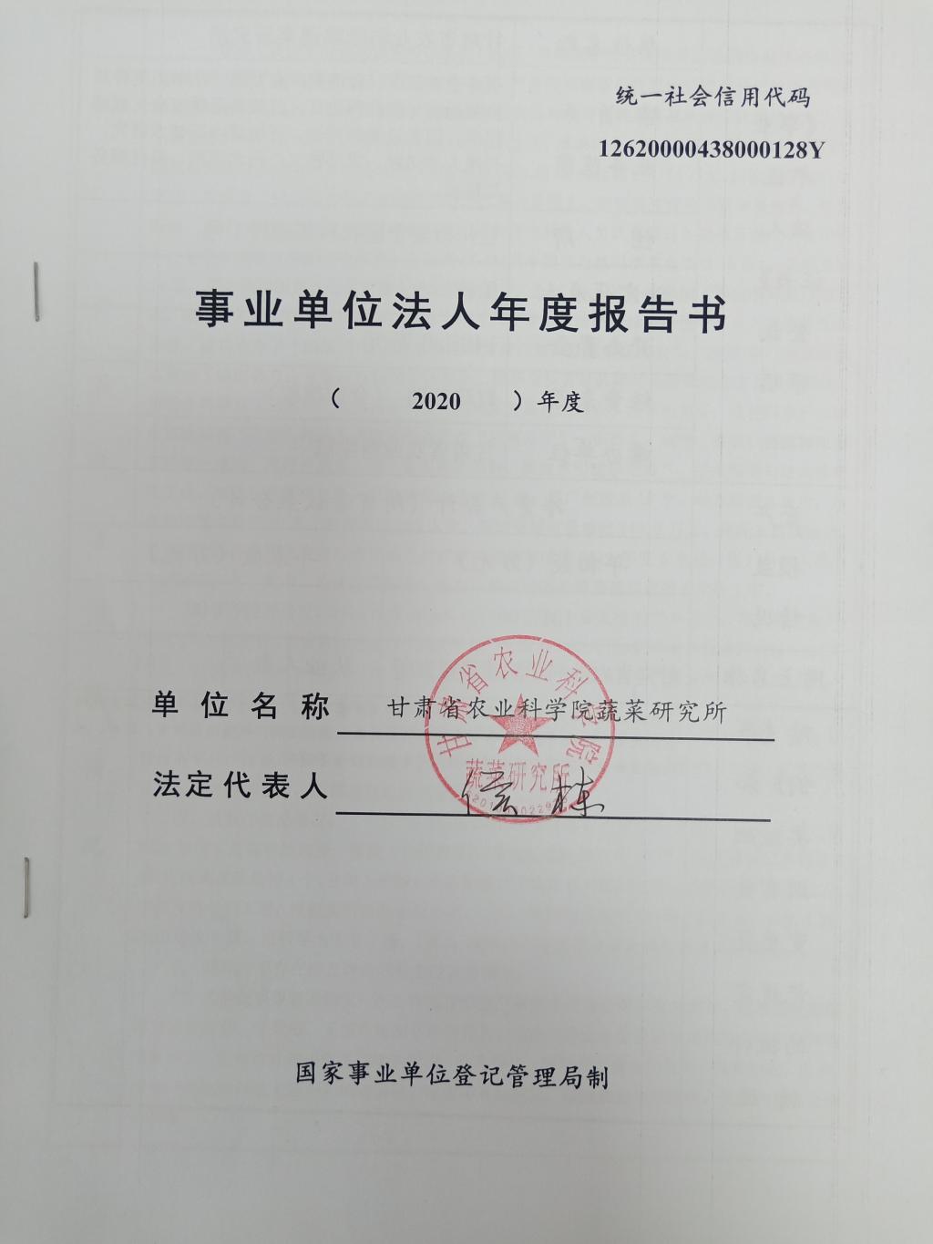 根据甘肃省事业单位登记局法人证书年检流程,现将我单位2020年度事业单位法人年度报告书予以公示,对报告书填写内容的真实性给予监督。