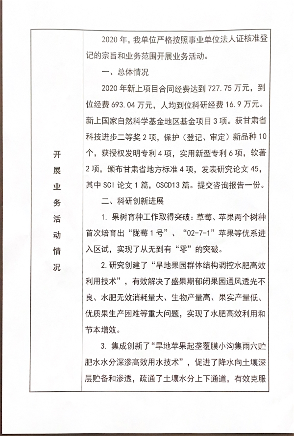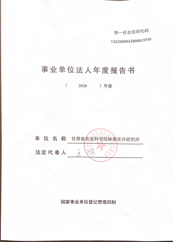根据甘肃省事业单位登记局法人证书年检流程,现将我单位2020年度事业单位法人年度报告书在院局域网予以公示,对报告书填写内容的真实性给予监督。