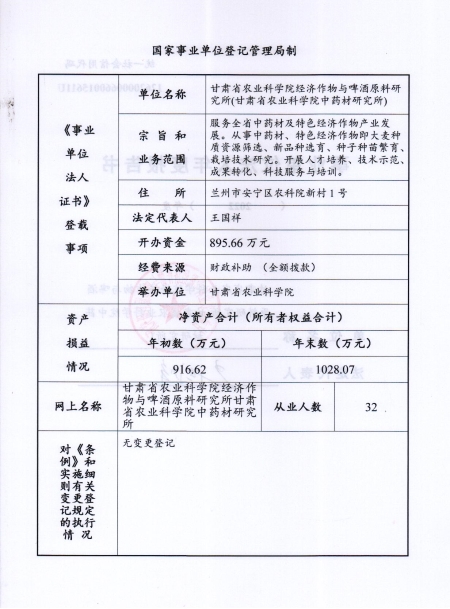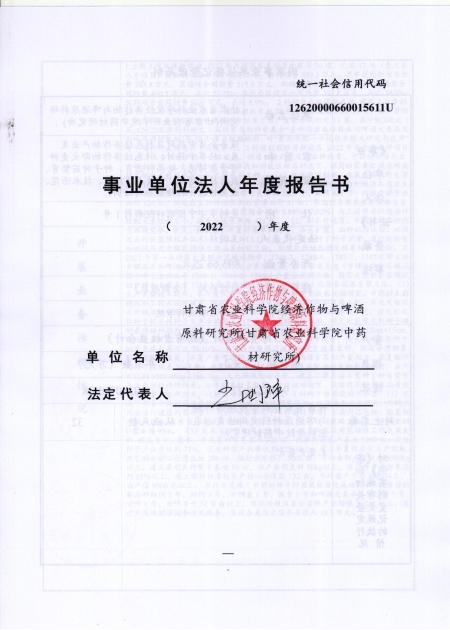 根据甘肃省事业单位登记局法人证书年检流程,我单位法人证书的年检报告书通过网上已提交甘肃省事业单位登记局审核通过,按流程需在院局域网上进行公示,现将我单位2022年度事业单位法人年度报告书予以公示,对报告书填写内容的真实性给予监督。