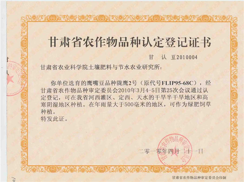陇鹰2号鹰嘴豆由甘肃省农业科学院土壤肥料与节水农业研究所选育。