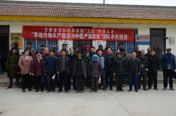 “把脉传统农业,助推扶贫攻坚进程”。3月24至25日,我院旱地农业研究所“三区”科技人才“旱地作物丰产栽培与中低产田改良”团队成员郭天文、何宝林研究员,吕军峰、张朝巍副研究员,张国平、刘晓伟、曾骏、董博助理研究员赴安定区团结镇金花村、香泉镇陈家屲村进行科技培训。结合当地产业发展,分别就马铃薯高效栽培技术、马铃薯优质品种选择与种薯处理、土壤改良与培肥技术、新垦土壤综合培肥技术以及玉米全膜双垄沟播种植技术进行了培训,针对农户在种植、养殖及“三农”政策和精准扶贫方面存在的问题和顾虑,进行了现场解答。