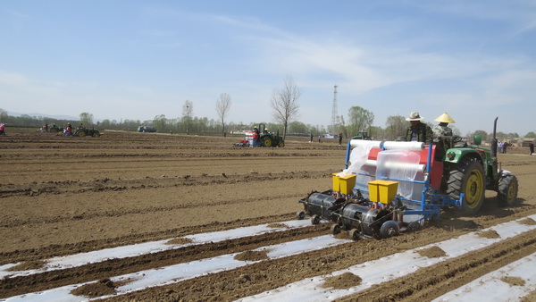为积极投身“三区三州”科技扶贫和落实乡村振兴实施方案,国家玉米产业技术体系兰州综合试验站在临夏县安家坡乡安家坡村,依托燎原乳业建立了百亩示范基地。2019年4月11日,该站举办了粮饲兼用和青贮玉米农艺农机融合机械化播种现场演示会,集中展示了施肥、覆膜、播种一体化作业,安排了以粮饲兼用和青贮玉米新品种、控释氮肥一次基施、全生物降解膜、机械等为主的大田示范活动。