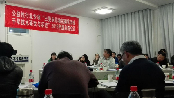 1月23-24日,公益性行业(农业)专项“主要农作物抗御季节性干旱技术研究与示范”2015年度工作总结及2016年重点任务安排工作会议在北京召开。会议由中国农业大学主办,项目首席王璞教授主持,中国农业大学、中科院农业环境与可持续发展研究所、中国水稻研究所、西北农林科技大学、河南农科院、甘肃省农业科学院等课题负责单位参会。