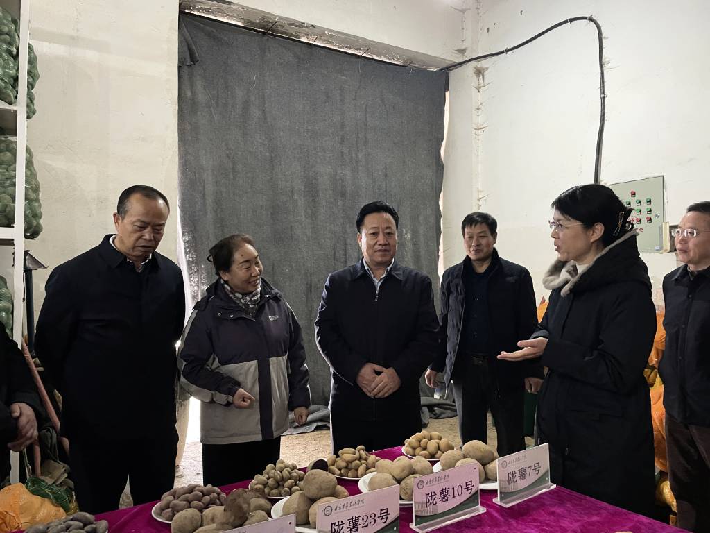2025年12月16日,兰州市副市长刘凤恒一行到榆中试验站实地调研农业农村部作物栽培与植物保护现代农业科技试验示范基地(榆中)建设情况。院长、党委副书记常宏一同调研。榆中县副县长李敬强,我院林果所、马铃薯所、兰州市农业农村局及县农业农村局有关负责同志参加。