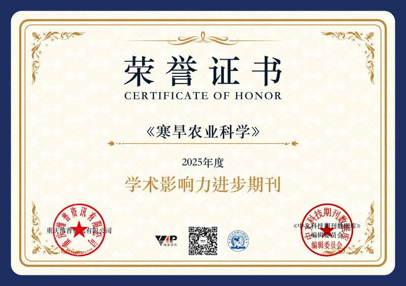 近日,在维普资讯中文科技期刊数据库举办的2025年度期刊评选活动中,由我院主管、主办的《寒旱农业科学》荣获“学术影响力进步期刊”奖。