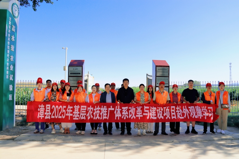 8月28日,漳县基层农技推广体系改革与建设项目培训班学员一行30余人到张掖试验站(场)观摩调研,副站(场)长田靖、赵朔阳陪同。