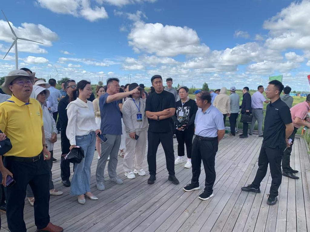 会议期间,与会专家实地考察了科左中旗防沙治沙和风电光伏一体化工程沙地治理项目及开鲁县羊草小镇,专家学者们就中度和重度退化草原修复草种选择、技术方案、工程管护、质量标准、生态效益等开展交流。我院畜草与绿色农业研究所所长、党总支书记马学军及相关科研人员参会,并与专家学者就草业科技创新与草原生态修复等方面进行了深入交流与探讨。