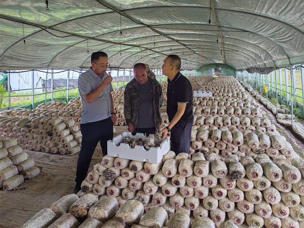 科技服务组赴关家川何家村香菇基地,查看香菇出菇情况,从出菇温度和水肥管理方面进行指导,为香菇正常出菇及产量提供技术保障。小关乡唐藏村食用菌基地,重点对赤松茸的辅料试验、平菇品种示范试验进行观测,并对赤松茸转潮控水管理、提高一二级商品菇占比进行现场培训指导。科技服务组查看了关家川何家村日光温室产业园部分辣椒种植温室遭遇洪水的情况,提出要及时排水、通风降湿和“喷施杀菌剂+叶面肥+生长调节剂”的方法,防治根部病害,增强温室辣椒的抗性;同时,针对郭干乡酸梨树村的大葱灰霉病大面积突发的情况,通过现场查看发病情况,从药剂选择、用药时间及注意事项进行详细解答,做到了发现问题到解决问题的高时效性。