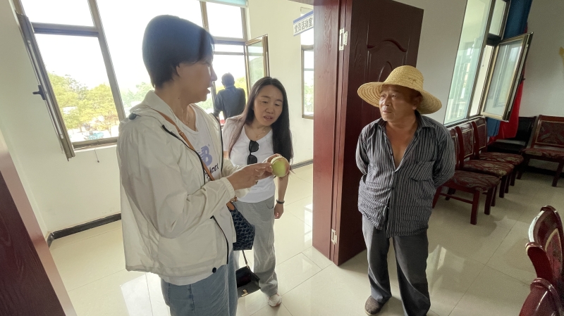 在曹家湾村的桃园里,牛茹萱根据不同桃园的管理情况从树形修剪、专用肥料的使用、灌水时机的掌控,不同病虫害的最佳防控期等方面开展了技术指导。