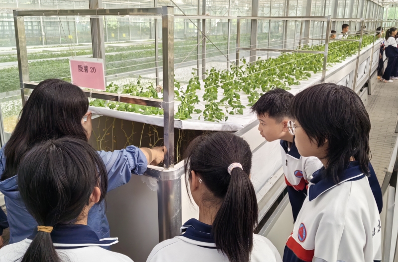 在马铃薯繁育基地,同学们被大大小小的马铃薯所吸引,也见识到马铃薯的繁育不仅有传统的土培种植,还有“水培”、“雾培”等无土栽培技术。通过“水培”和“雾培”,将营养液雾化后直接喷施到植物根系以提供植物生长所需水分和养分,从而避免了土传病害,大大提高了繁育效率。