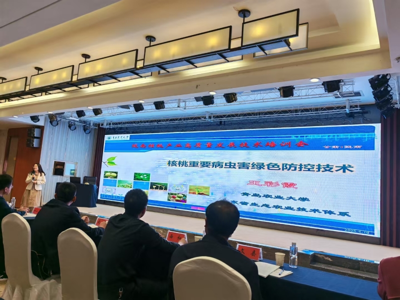 会上,青岛农业大学王彩霞教授、甘肃省农科院林果花卉研究所刘小勇研究员和陇南市经济林研究院任志勇正高级工程师分别就“核桃病虫害绿色防控技术”“核桃养分管理与施肥技术”和“提振信心、多措并举合力促进陇南核桃产业高质高效发展”等进行培训。
