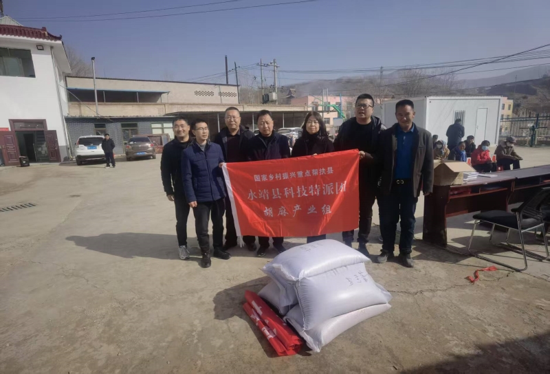 3月7日,国家乡村振兴永靖县科技特派团胡麻产业组成员赴新寺乡崖头村开展科技培训服务。