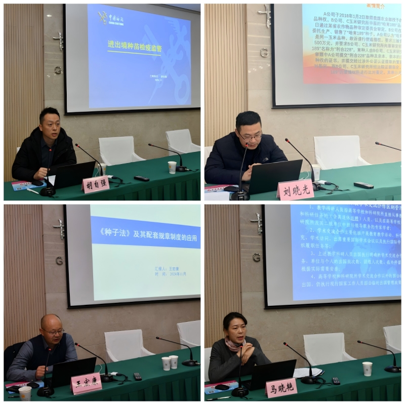 本次培训班邀请了甘肃省种子总站副站长、正高级农艺师王宏康,甘肃省人民政府外事办公室出入境管理处副处长、外交部特聘外事管理法规宣讲员马晓艳,甘肃省高级人民法院民事三庭三级高级法官刘晓光,兰州海关动植物和食品检验检疫处二级主任科员胡自强等专家授课,重点围绕进出境种苗检疫监管、种业知识产权司法保护、《种子法》及其配套规章制度的应用、因公出入境管理培训及注意事项等多个方面开展培训,旨在引导干部职工树牢种源安全意识,提高风险防范意识,加强农业种质资源合作交流与管理能力,依法依规利用农业种质资源与国内外开展科技合作,解决农业种质资源进出境交换中的实际问题,推动我院科技合作与交流持续稳步发展。