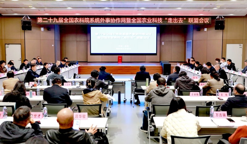 11月25日,由农业农村部科学技术司主办、中国农业科学院国际合作局承办的2024年农业科技国际合作座谈会、第29届全国农科院系统外事协作网暨全国农业科技“走出去”联盟会议在湖南省长沙市召开,农业农村部科学技术司副司长、一级巡视员蒋丹平主持会议,湖南省农业农村厅党组成员、副厅长欧阳,湖南省农业科学院党委书记柏连阳院士先后致辞,科技部国际合作司二级巡视员秦卫东讲话,院党委委员、副院长杨天育代表我院参加会议。