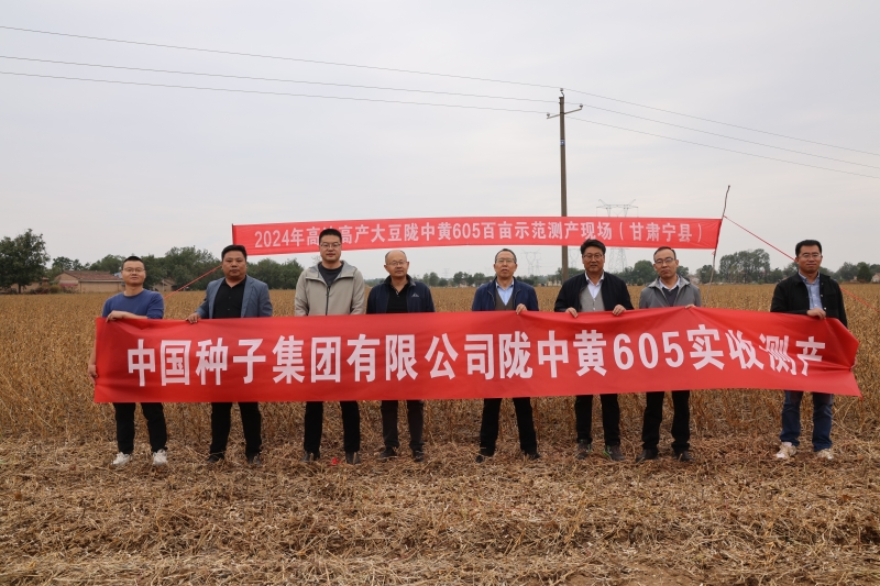 “陇中黄605”是我院作物研究所育成的高油高产大豆品种,通过了国家和甘肃省审定,并于2024年3月将生产经营权成功转让与中国种子集团有限公司。通过优质品种高产创建示范推广模式,提升大豆生产技术,推动大豆产业高质量发展。“陇中黄605”百亩示范田建设和现场观摩,积极发挥示范宣传带动作用,为我省粮食单产提升树立了新典型,为巩固“陇东粮仓”提供了新经验,对助力农民增产增收发挥了积极作用。