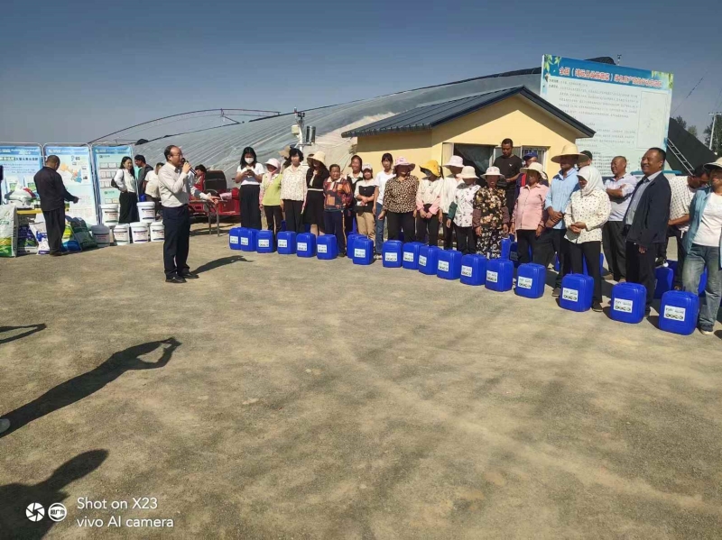 蔬菜所党总支书记、所长侯栋介绍了课题任务目标、试验安排及实施要求,课题承担单位负责人陈玉强介绍了园区发展及项目运行情况。与会人员实地观看了“撒肥机、耕整地机、起垄覆膜机、各种移栽机“等现场演示;沈阳农业大学孙周平教授对日光温室蔬菜宜机化生产模式及关键技术进行现场培训,侯栋对水肥一体化灌溉技术及本所研发的“防病促生型复合微生物菌剂”的特性、施用方法做现场培训,并为贫困户发放微生物菌剂100余桶。